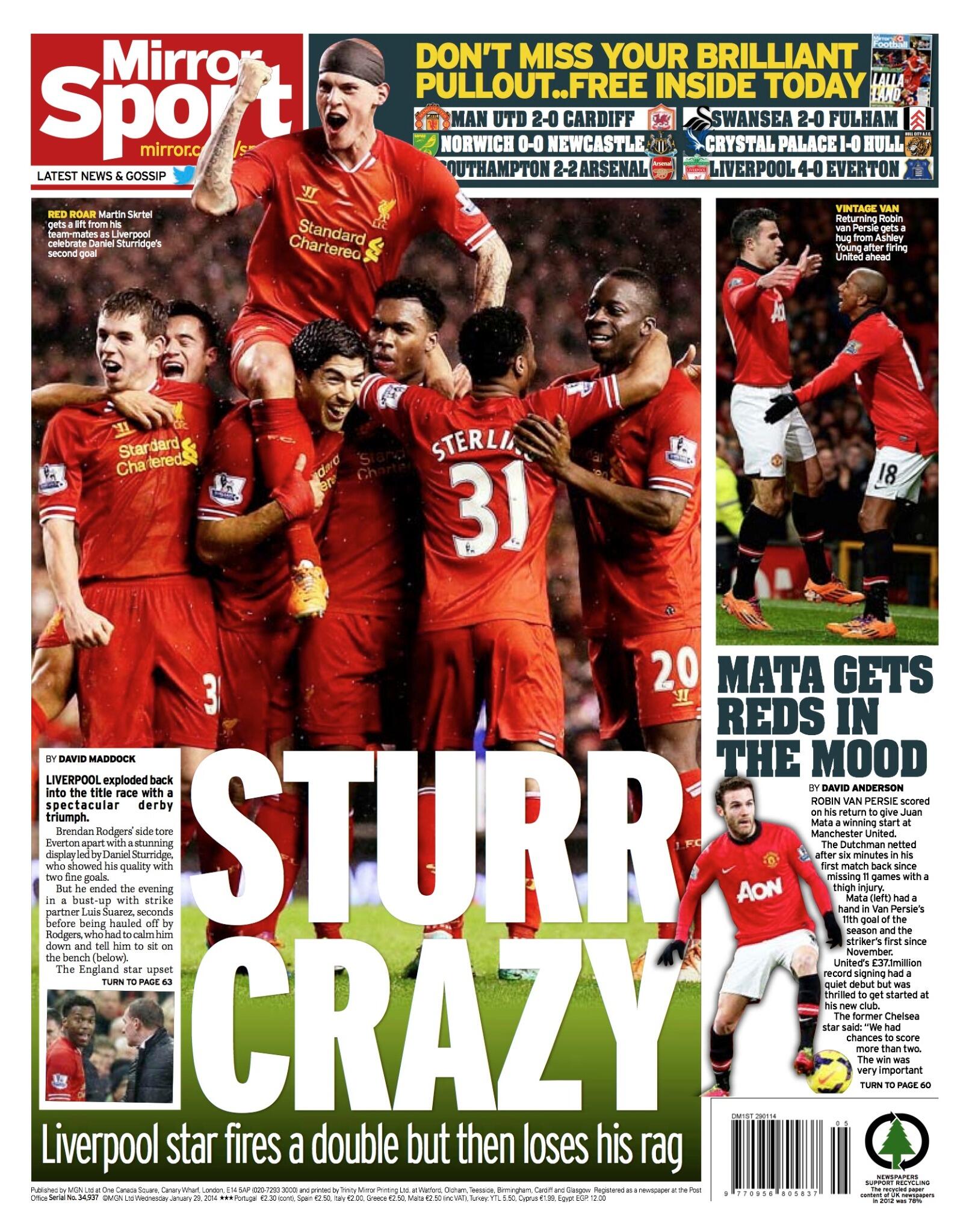 És akkor még emeljük ki a gólpasszos szögletét, a hatalmas mezőnymunkáját, azt a helyzetet, amit Sturridge a büntetős felindultságában elönzőzött – bár akkor inkább Coutinhonak kellett volna visszakapni a labdát -, és igazából a végtelenségig lehetne sorolni csak azt, amit ma tett. 18 meccsen most már 23 gólnál jár, mindezt összesen 3 sárgával, amit 5. meccse nem is kapott. Suárez nem ember, nem játékos, hanem egy csúcson lévő élő legenda, aki ma ugye egy góllal és egy gólpasszal, zárta a napot, és erre azt lehet mondani, hogy kicsit szürke volt, meg Sturridge ellopta előle a show-t. Pont, ahogy mi is tettük ezt a címlapokkal mára.